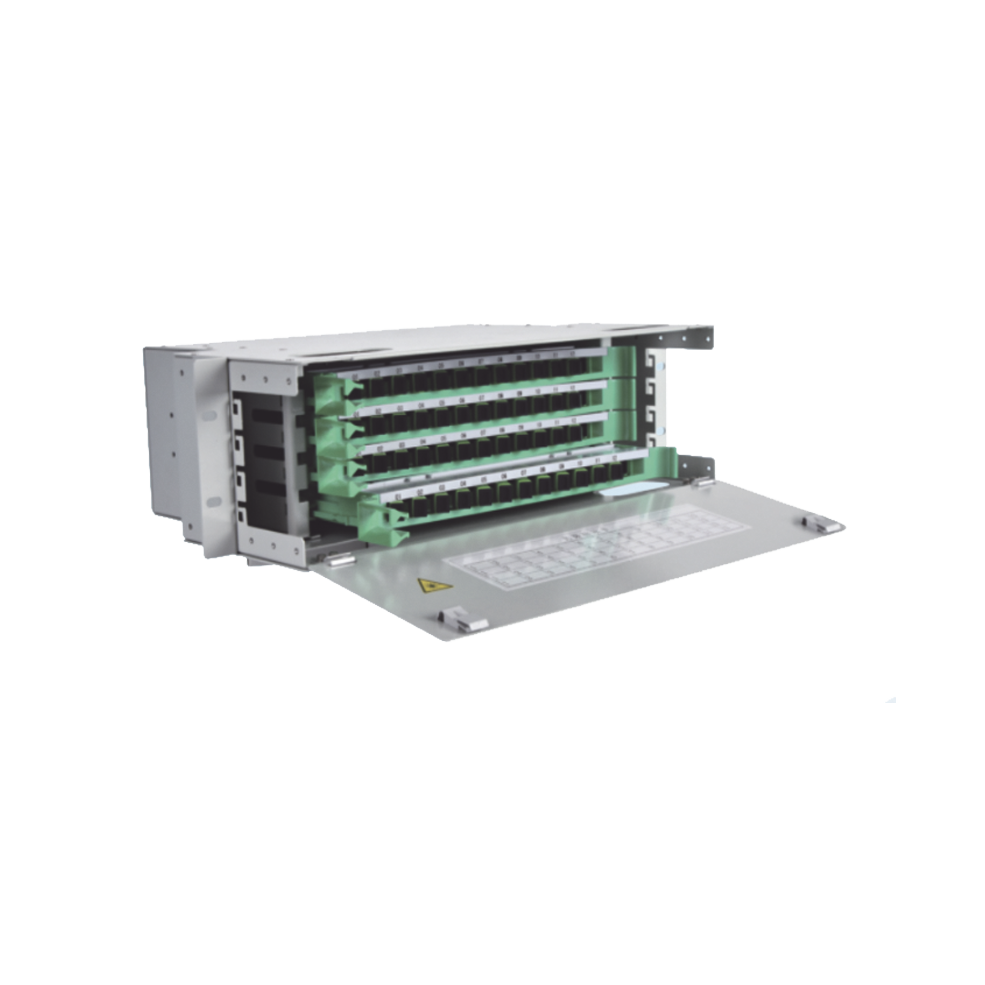 La serie ODU de Distribuidores de Fibra Óptica de FiberHome pueden ser utilizados para fusión y terminación de hasta 216 fibras. Cuenta con protección de radio de curvatura para las fibras, almacenamiento y charola para fusión.