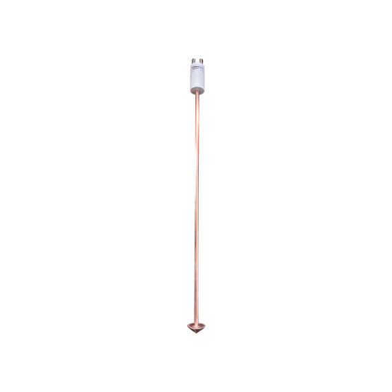 - Fabricado en cobre electrolítico, termina en punta cónica para garantizar el menor nivel de resistencia y una mayor área de contacto con el terreno.