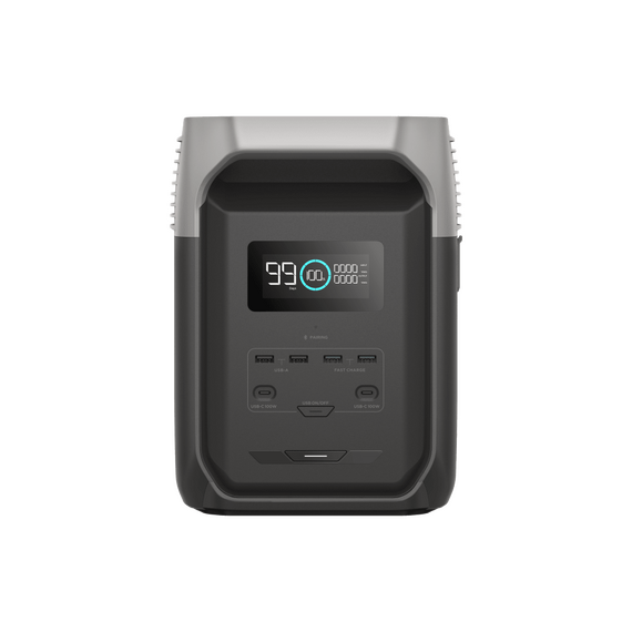 Estación de Energía Portátil Delta 3 1536Wh Litio LFP / 6 AC 1800 W (Max. 3600W) / 2 USB-C 100W / Capacidad para Aumentar Respaldo / Cargador de Coche 10A a 12.6V / Conectividad WiFi y Bluetooth (App) / Carga Solar 500W Max. EFD31500