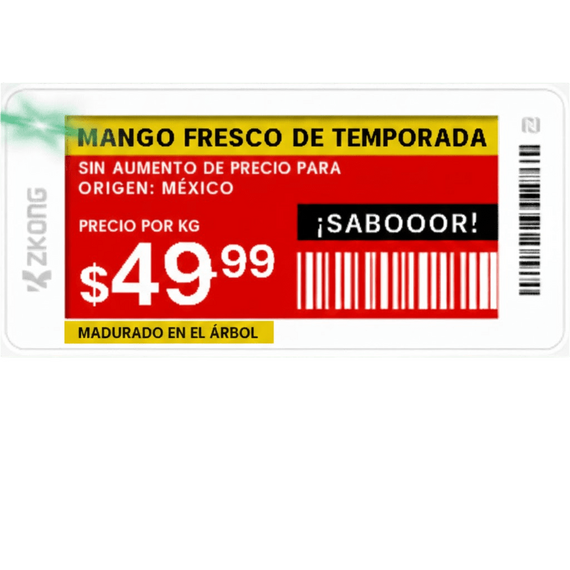 - Display de 4 colores (Negro, Blanco, Rojo, Amarillo) para destacar promociones y ofertas