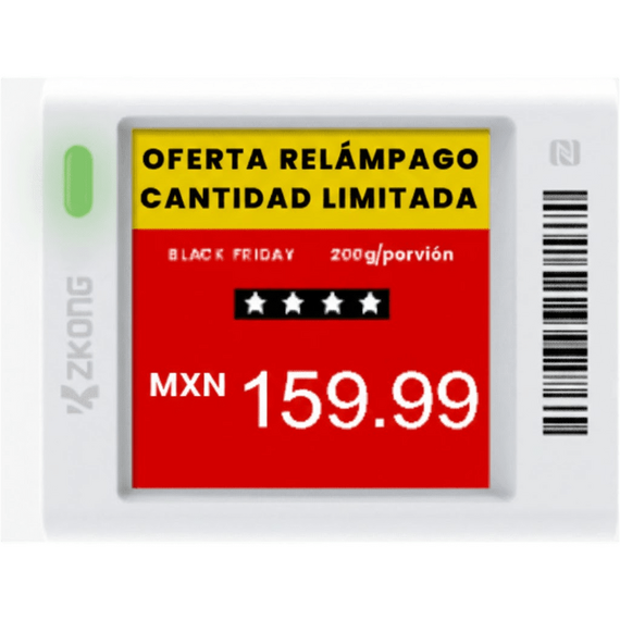 Etiqueta Electrónica de Estantería ESL 1.5\" / Pantalla EPD Gráfica Matriz de Puntos 152x152 píxeles / 4 Colores (Negro Blanco Rojo Amarillo) / BLE 5.0 con Encriptación AES-128 / Autonomía 3 Años con 4 ZKC15V
