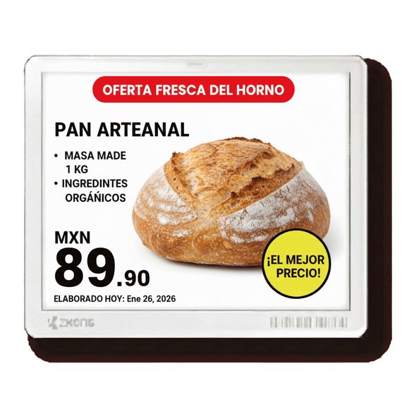 Etiqueta Electrónica ESL 5.8\" EPD Matriz de Puntos / Resolución 648x480 Pixels / 4 Colores (Negro Blanco Rojo Amarillo) / BLE 5.1 con Encriptación AES-128 / Batería 5 Años / NFC Opcional / Cloud Management / Certifi ZKC58B