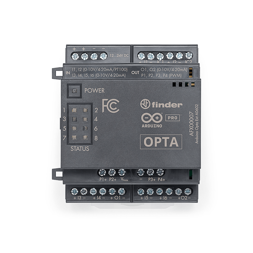 Expansión Analógica Arduino Opta® / 8 Canales I/O Configurables / 16-bit ADC / 13-bit DAC / 4 Salidas PWM / Protección IP20 / Industrial IoT AFX-00007