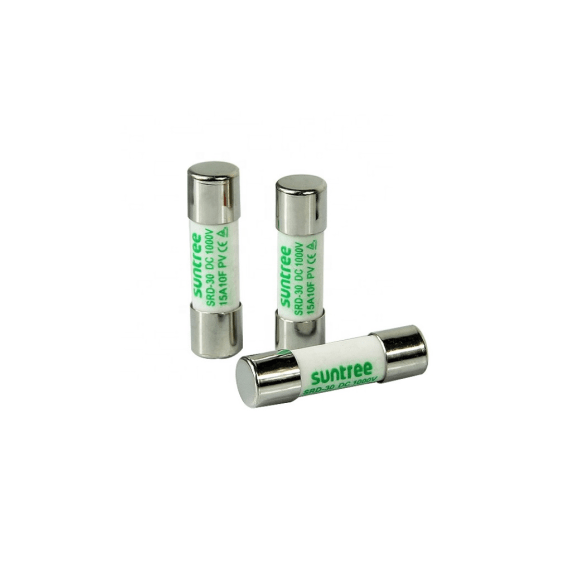 Fusible Fotovoltaico SRF30-15A – 1000V CD, 15A – Protección de Cadenas (Strings) – Formato Cilíndrico 10x38mm – Alta Capacidad de Ruptura.