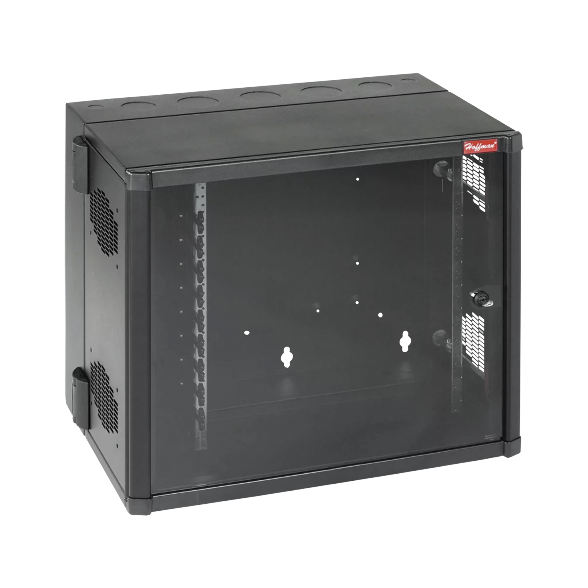 Gabinete AccessPlus de Montaje en Pared de 19in, Rieles Numerados y Roscados #10-32, Puerta con Ventana de Seguridad, 700 mm de Ancho, 637 mm de Profundidad, 26 UR, Color Negro EWMW482825