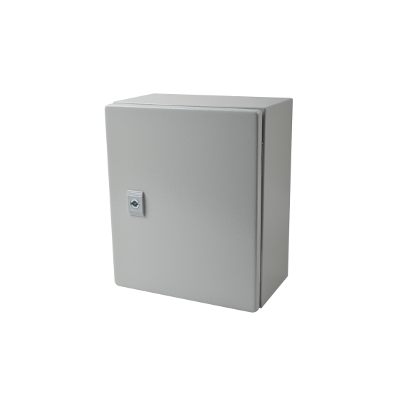 Gabinete de acero para uso en aplicaciones en exterior como postes, torres de telecomunicación o pared donde no se cuente con protección contra lluvia o polvo excesivo.