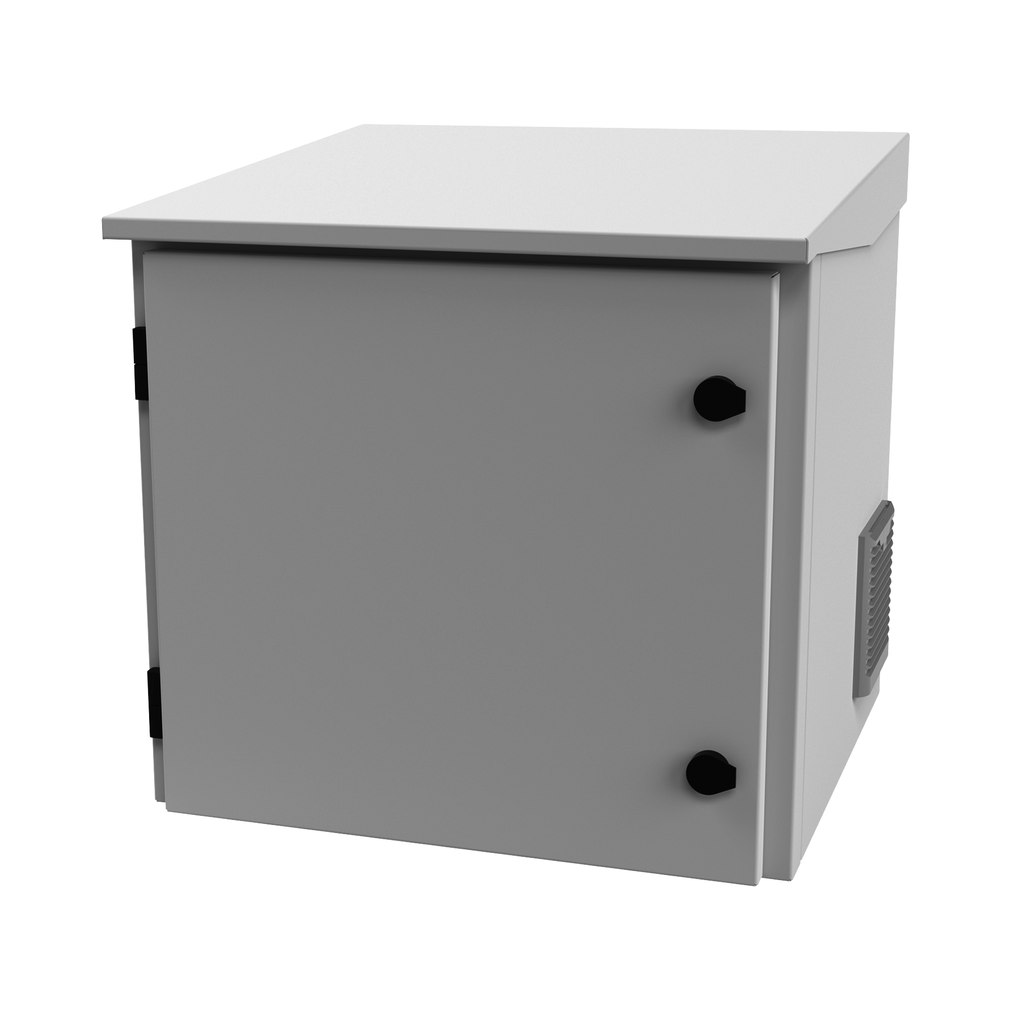 Gabinete para Exterior con Ventiladores y Termostato con Rack de 19' de 9 Unidades con capacidad de ser instalado en torre, poste o pared.