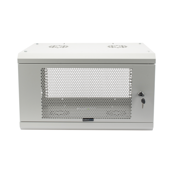 Gabinete de Pared de 6U con Puerta Perforada, 455 mm de Profundidad Total, Rack de 19\'\', Acero Reforzado Color Gris Mate SR1906LH3PW