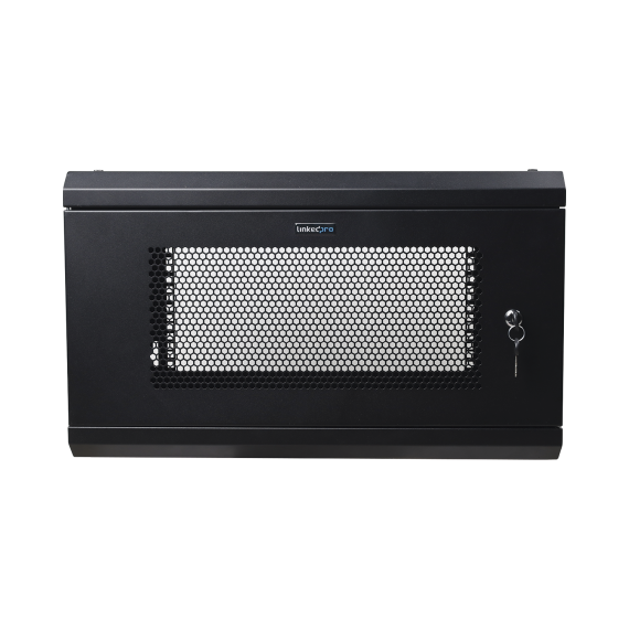 Gabinete de Pared de 6U con Puerta Perforada, 455 mm de Profundidad Total, Rack de 19\'\', Acero Reforzado Color Negro SR1906LH3P