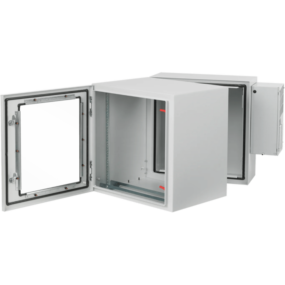 Gabinete Industrial ProTek de Puerta con Ventana, Con Aire Acondicionado de 800 BTU, Protección NEMA Tipo 4/12; IP66; IK10, Abatible, Fabricado en Acero, 19 UR, Color Gris Claro PTHW362428G2A