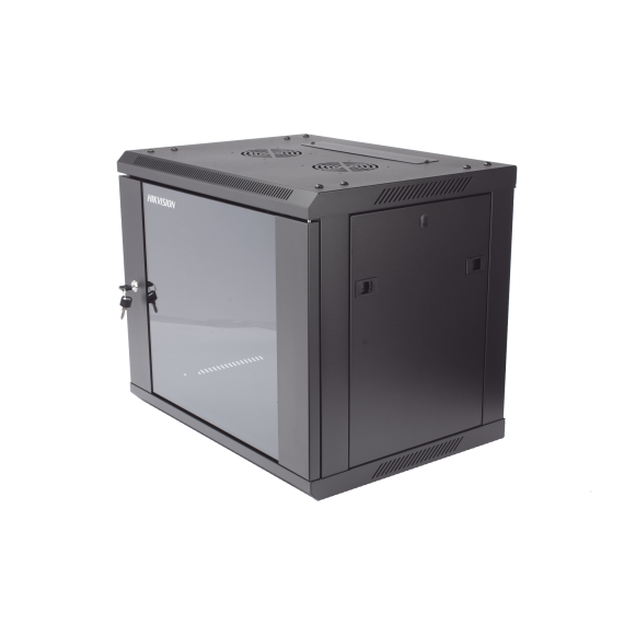 Gabinete para Montaje en Pared - Piso / Puerta de Cristal Templado / Cuerpo Fijo / 9 Unidades de Rack / 19\" / Fabricado en Acero DS-XS6409-S/B