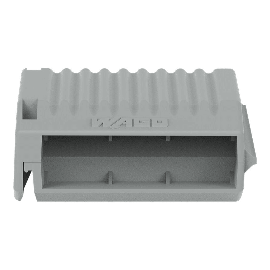 Gelbox de conexión en línea Serie 221 diseñado para empalmes de cables hasta 4 mm² con protección de gel. Sistema completo certificado VDE con grado de protección IPX8 que garantiza estanqueidad en ambientes húmedos. Fabricado en polipropileno de color gris, no contiene silicona y permite reacceso para modificaciones futuras. Ideal para aplicaciones de baja tensión superiores a 50 V cuando se utiliza dentro de cajas de conexiones. Diseño compacto con mecanismo de cierre seguro mediante pestillos laterales.