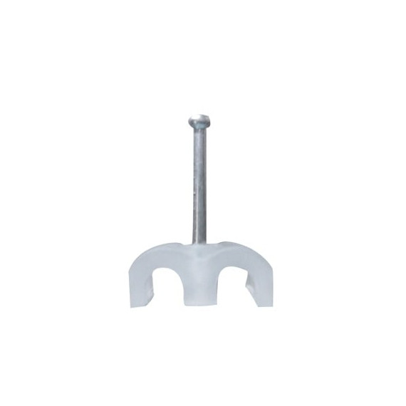 - Grapas con clavo integrado para sujetar conductores redondos a muros o techos.