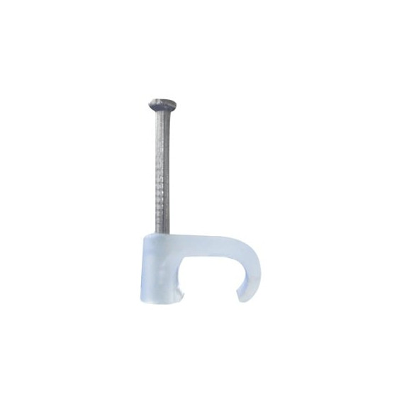 - Grapas con clavo integrado para sujetar conductores planos a muros o techos.