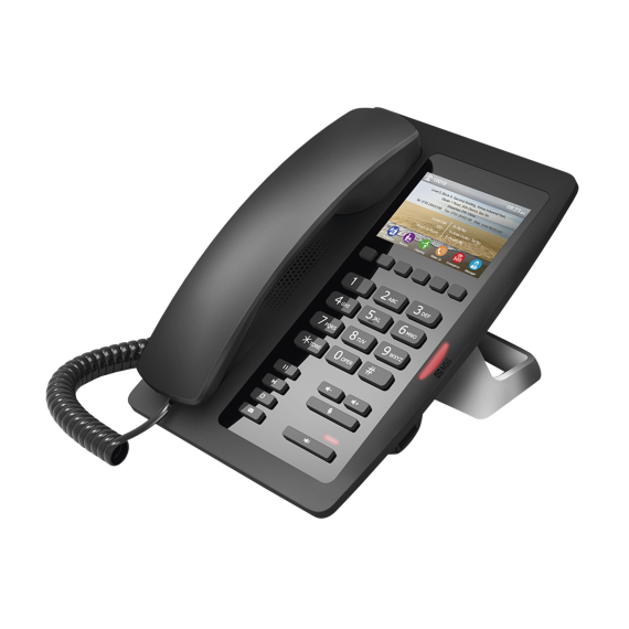 Fanvil H5 es una opción excelente y asequible para teléfonos IP de hotel, con una pantalla a color de 3,5 pulgadas y fácil de usar. El hotel podría personalizar la información (como la dirección del hotel, el logotipo, los números de teléfono relacionados, etc.) en la pantalla y brindar una mejor experiencia de vida a los huéspedes del hotel. El teléfono IP H5 esta diseñado para ambientar en los lugares más concurridos para hoteles como pueden ser los lobbys o bien, los mismos cuartos de huéspedes de las cadenas hoteleras o en moteles.