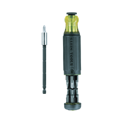 El destornillador / llave de tuercas 10 en 1 KNECT™ de Klein es una herramienta multifuncional diseñada para uso con impacto, compatible tanto con herramientas eléctricas como con el mango de destornillador incluido.