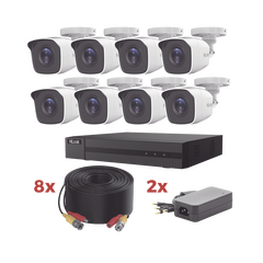 HL1080P8E El KIT incluye: 1 x DVR-208G-M1(C) 8 x THC-B120-MC 2 x PLK12DC4CH 8 x DS-1LH1S2C-20 1 x DVR-208G-M1(C) DVR pentahibrido: HD-TVI / HD-CVI / Analogico / IP / AHD. Soporta audio en todos sus canales por coaxitron.