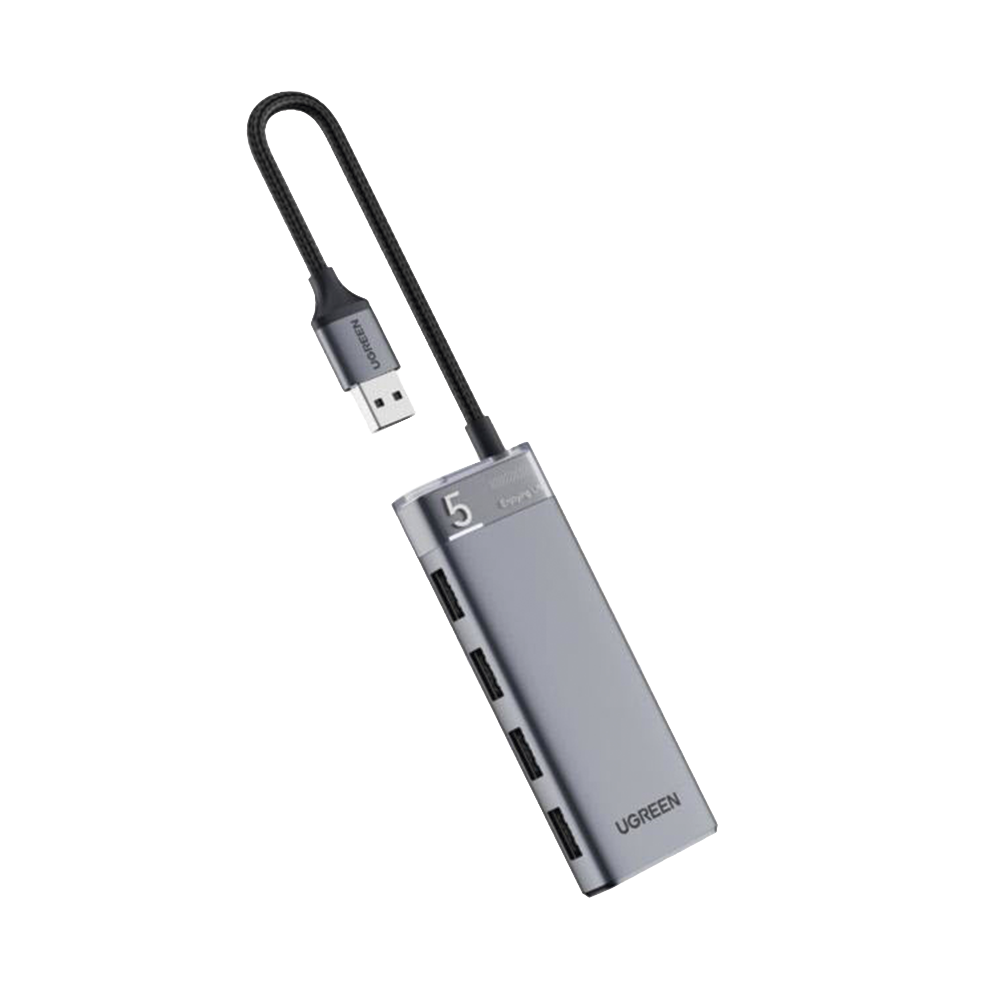 HUB USB-A 3.2 Gen1 4 EN 1 | 4 Puertos USB-A (5Gbps) | Carcasa ABS + PC | Soporta OTG | Luz Indicadora LED | Cable de Nylon Trenzado de 20cm (Mas de 20000 flexiones) | Interfaz Niquelada | Color Gris Metalizado. 15548