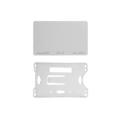 Tarjeta UHF Delgada 960 Mhz*Pregunte por la promoción de descuento por volumen de compra. Especificaciones Técnicas Formato Wiegand 26 bits Estándar. Protocolo EPC GEN 2. Material de fabricación PET. Dimensiones: 85.6 x 54 x 1 milímetros.
