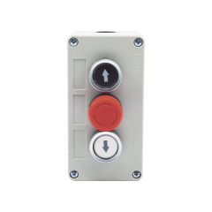 Botonera triple para aplicaciones de Acceso Vehicular. Ideal para uso en aplicaciones de operadores corredizos, operadores abatibles y barreras Vehiculares.