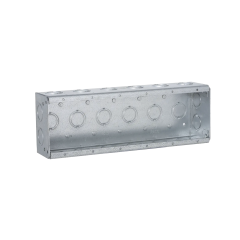 Las cajas multigang de acero galvanizado de 2 1/2" de profundidad con entradas para tubería de 1/2" - 3/4". Especificaciones:  Montaje Caja Número de gangs 6 Material Acero Tipo Soldada Profundidad  2.