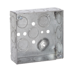 Caja cuadrada de acero galvanizado para instalaciones eléctricas. Aplicaciones:  Las cajas RACO®, también llamadas cajas utilitarias son utilizadas para implementar tomacorrientes, interruptores o pequeñas cajas de conexiones.