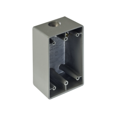 Características principales: Material: Aluminio inyectado a presión (diecast) Acabado: Pintura electroestática Epóxica-Poliéster polimerizada Medida: 12.7 mm (1/2") Bocas: 1 Arriba/ 2 Abajo Volumen: 275.5 cm3 Peso: 0.