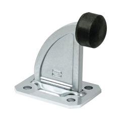 Tope para puertas corredizas Código Comunello: 202 Tipo: Stop con base de fijación Material: Acero galvanizado con tapón de nylon Fijación: Por medio de taquetes Peso: 0.