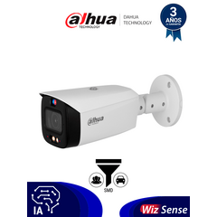 DAHUA DH-IPC-HFW3449T1-ZAS-PV - Cámara IP Bullet de 4 MP /WizSense/ Lente Varifocal/ TIOC 2.01/ disuasión activa de luz dual inteligente/ IR 50 m/Luz cálida 40 m/ SMD 4.0/ Disuasión Activa/ Audio bidireccional/ PoE/ IP67/ E&S de Alarma