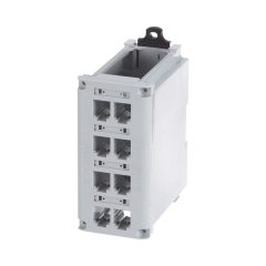 El adaptador blindado de montaje en riel DIN Mini-Com® es un adaptador de un solo puerto diseñado para instalarse en un riel DIN de 35 mm. Incluye etiquetas y una cubierta para facilitar la identificación del puerto.