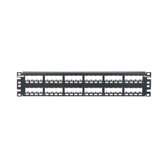 Todos los paneles de parcheo modulares metálicos estan hechos de acero inoxidable y se montan en Rack y Gabinetes estándar.