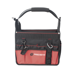 Características Marca: PRECISION Modelo: PSTH07004 Dimensiones: 31 x 21.5 x 31 cm Descripción Bolsa con asa portaherramientas de dimensiones 31 x 21.5 x 31 cm, diseñada para facilitar el transporte y organización de herramientas.