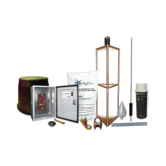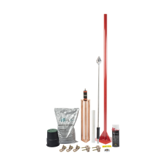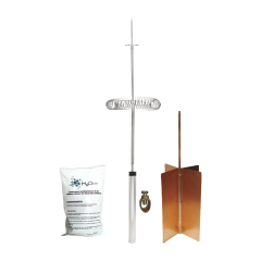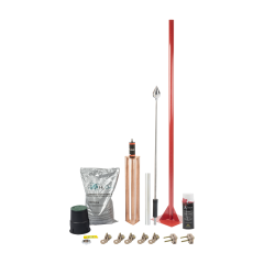 Kit completo de pararrayos con electrodo de descarga y accesorios. Ideal para sistema de elevación, torres arriostradas, torres autosoportadas, mástiles, etc. Ofrece un ángulo de 72° de protección.