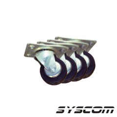 Características Principales Diámetro de la rueda: 2.5 pulgadas (6.35 cm) Altura de montaje: 3.25 pulgadas (8.25 cm) Dimensiones de la base: 3 7/8' x 2 3/4' (9.8 x 7 cm) Distancia entre centros: 3' x 1 3/4' (7.62 x 4.