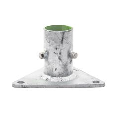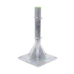 Base de techo para mástiles atirantados, instalación sobre concreto. Ideal para puntas pararrayos. Características: (4) Barrenos de fijación. (1) Barreno de drenaje. Fabricado de placa de 3/8' de espesor y tubo 2' ced. 30.