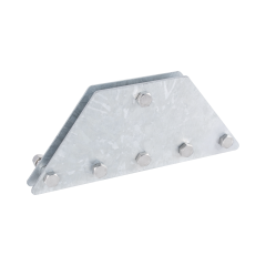 Características Barrenos para fijación: 2 de 1/2' Barrenos para sujeción: 3 de 7/16' Material: Placa de 1/4' de espesor Acabado: Galvanizado por inmersión en caliente Especificaciones Técnicas Peso: 1.