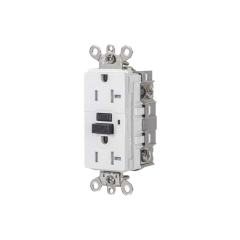 Especificaciones Aplicación: Grado Industrial Color: Blanco Ambientes de trabajo: Resistente a intemperie / Resistente a manipulaciones Estilo: Receptáculo GFCI Material: PC/PBT Serie: Servicio extra pesado Rango de amperaje: 20 A Rango de Voltaje: 125 V...
