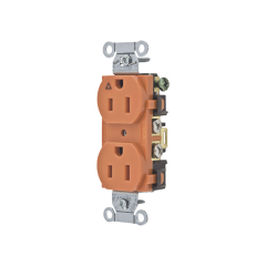 Contacto dúplex, grado comercial, 2 polos, 3 cables, 15A 125V, NEMA 5-15R, color naranja.