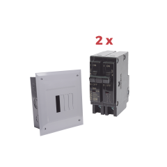 Kit de Centro de Carga para CA Incluye: 1 x C2Q04S Características: Voltaje de operación: 120/240 VCA Corriente nominal: 100 A Configuración: · 1 Fase, 3 Hilos Capacidad interruptiva: 10kA CA 50/60Hz Conexiones: Aluminio estañado 2 x B2QP230E...