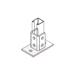 Descripción Base Cuadrada con 4 perforaciones para Perfil Doble. Características Principales Para Perfil Doble