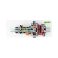 Kit de demostración de clemas y conectores WAGO Incluye riel DIN para montaje. Más de 20 modelos de clemas diferentes. Conoce la variedad de productos que WAGO tiene para facilitar y mejorar tus conexiones.