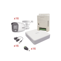 El KIT incluye: 1 x S16-TURBO-M/T 1 x DS-2FA1208-C16/K 16 x B8-TURBO-C/A 16 x TT-101-F-TURBO 16 x JR-52 S16-TURBO-M/T Características: DVR pentahibrido: HD-TVI / HD-CVI / Analogico / IP / AHD.
