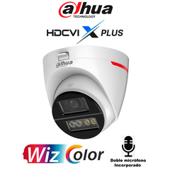 DAHUA DH-HAC-HDW1549XN-A-PRO -Cámara Domo 5MP WizColor/Imagen 24 Horas a Color/Corrección de Imagen Mediante IA/ Iluminador Int con Luz Calida/ Hasta 50m Ilumin/ Doble Mic Incorp/Lente de 2.8mm Visión de Hasta 101°/WDR Real/ Policarbonato+Metal