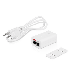 UBIQUITI POE-24-7W-G-WH - Inyector PoE Gigabit con protección contra descargas, alimentación de 24V DC a 0.3A y capacidad para reset remoto.