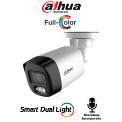 DAHUA DH-HAC-HFW1500RLN-IL-A-S3-DIP - Camara Bullet de 5 Megapixeles/ Iluminación Dual Inteligente + FullColor/ Lente de 2.8mm/ 106 Grados de Apertura/ 20 Metros de IR y Luz Visible/ Micrófono Integrado/ IP67/ Soporta: CVI/CVBS/AHD/TVI/