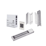 Kit para control de acceso incluye Fuente de 12VCD con respaldo de batería/ Chapa magnética de 600Lbs / Montajes L y Z / Botón de salida KITMAG12V
