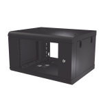 Gabinete de Pared de 6U con Puerta de Cristal Templado, 479.5 mm de Profundidad, Rack de 19\'\', Acero Reforzado Color Negro. SR-1906-LH2G