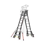 Escalera de Fibra de Vidrio con Jaula de 8\'-14\' (2.44 - 4.27 m). Con Ajuste en Ruedas (RATCHET™ Leveler) (SKU:18515-817). CAGE8FTR