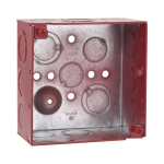 Caja Cuadrada Galvanizada de 4\" /Profundidad de 2 1/8\" / Cuenta con 11 KO de 1/2\" y 6 TKO (1/2\" - 3/4\")/ Color Rojo. HUB-911-3