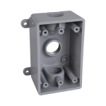 Caja Impermeable de 1 Gang / Profundidad de 2\"/ Cuenta con 3 Salidas roscadas para tubería de 1/2\" ó 3/4\"/ Color Gris. HUB-PSB-37550-GY